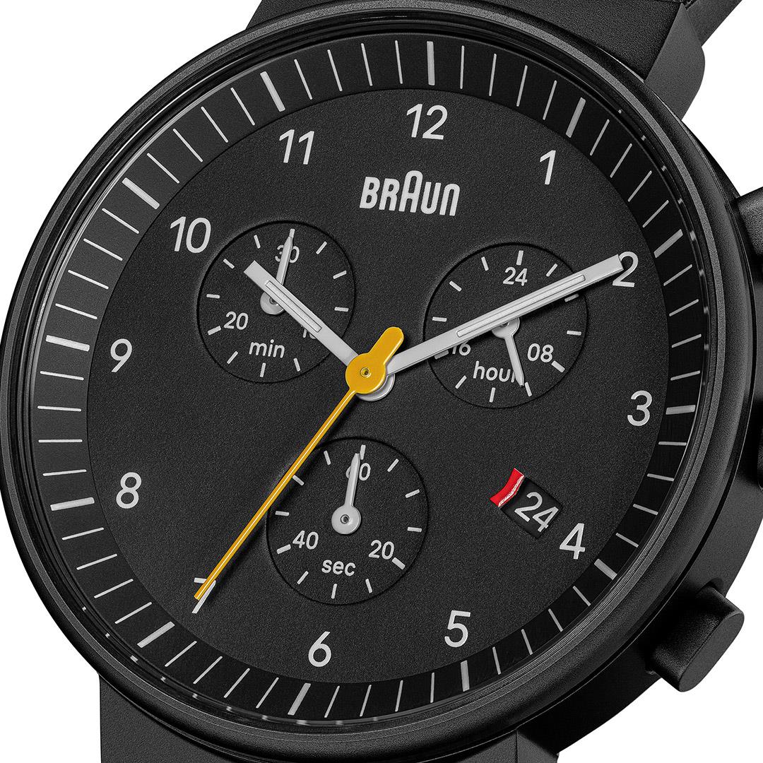 The outstanding design concept of the Braun classic chronograph watch received two gold iF product design awards and two Red Dot honourable mentions. This watch exemplifies clean, modern design making it a timeless classic.